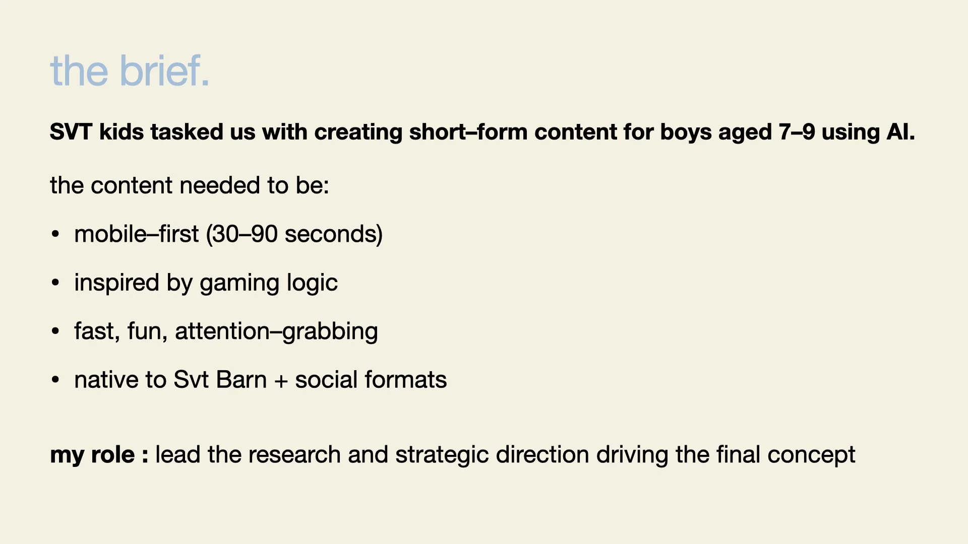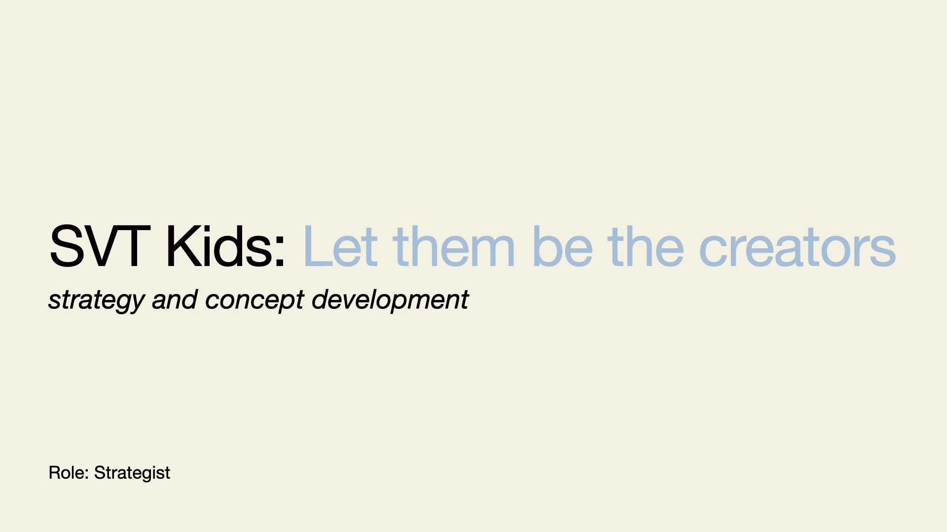 Strategy and concept development for SVT Kids, transforming Gen Alpha insights into an interactive AI-driven storytelling format kids can help create.